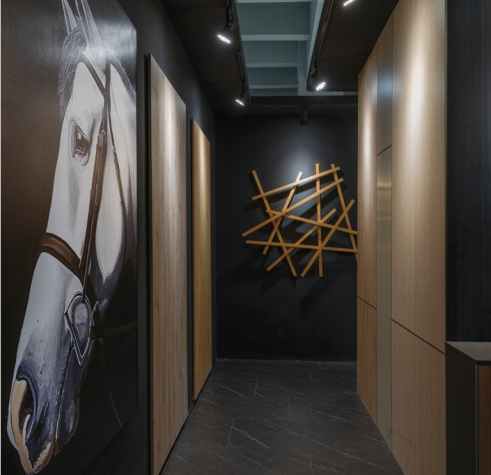 科爾卡諾集團旗下按照工業4.0標準建設全自動化板材壓貼工廠,具有前端高標環保、自主研發的強大優勢, 采用歐洲設計與技術,開發逼真度非常高的同步木紋效果飾面板材,同時針對國內市場,開發具有針對性的差異化特色飾面板材產品。